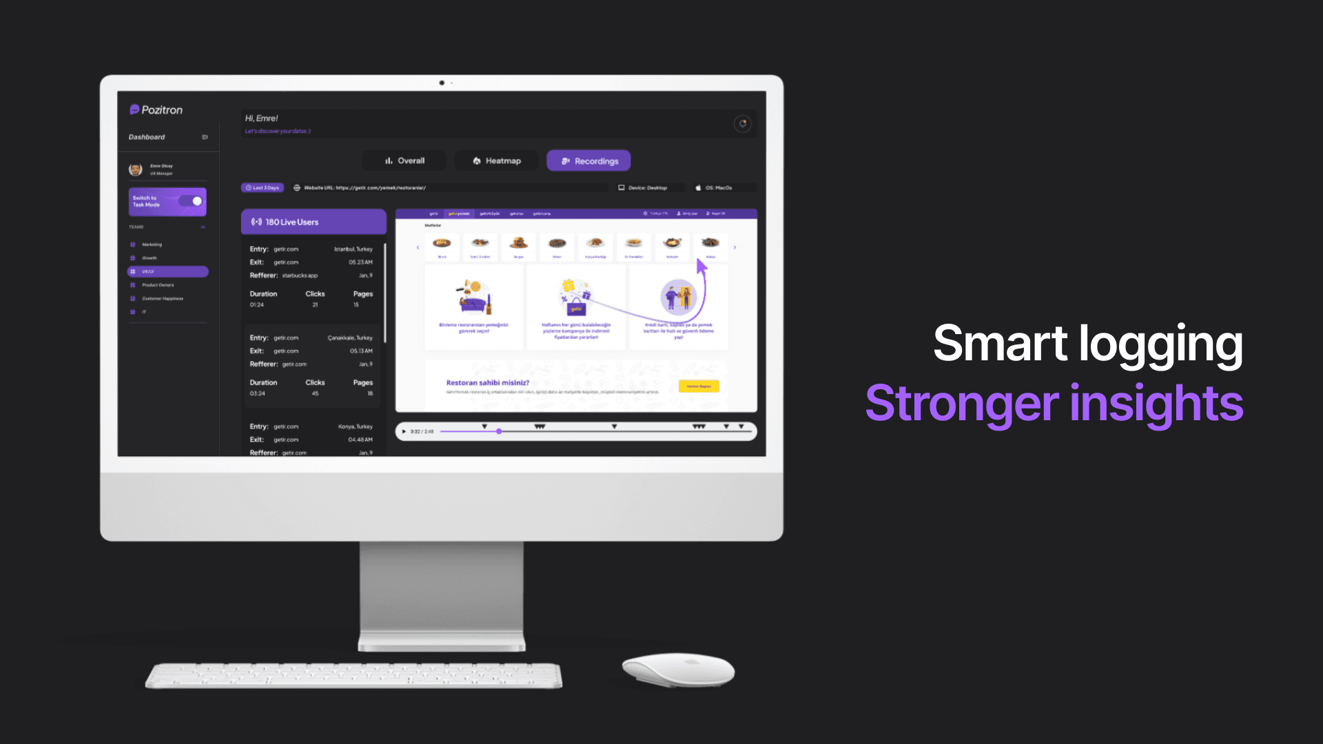 Track your users' actions, create actionable insights.