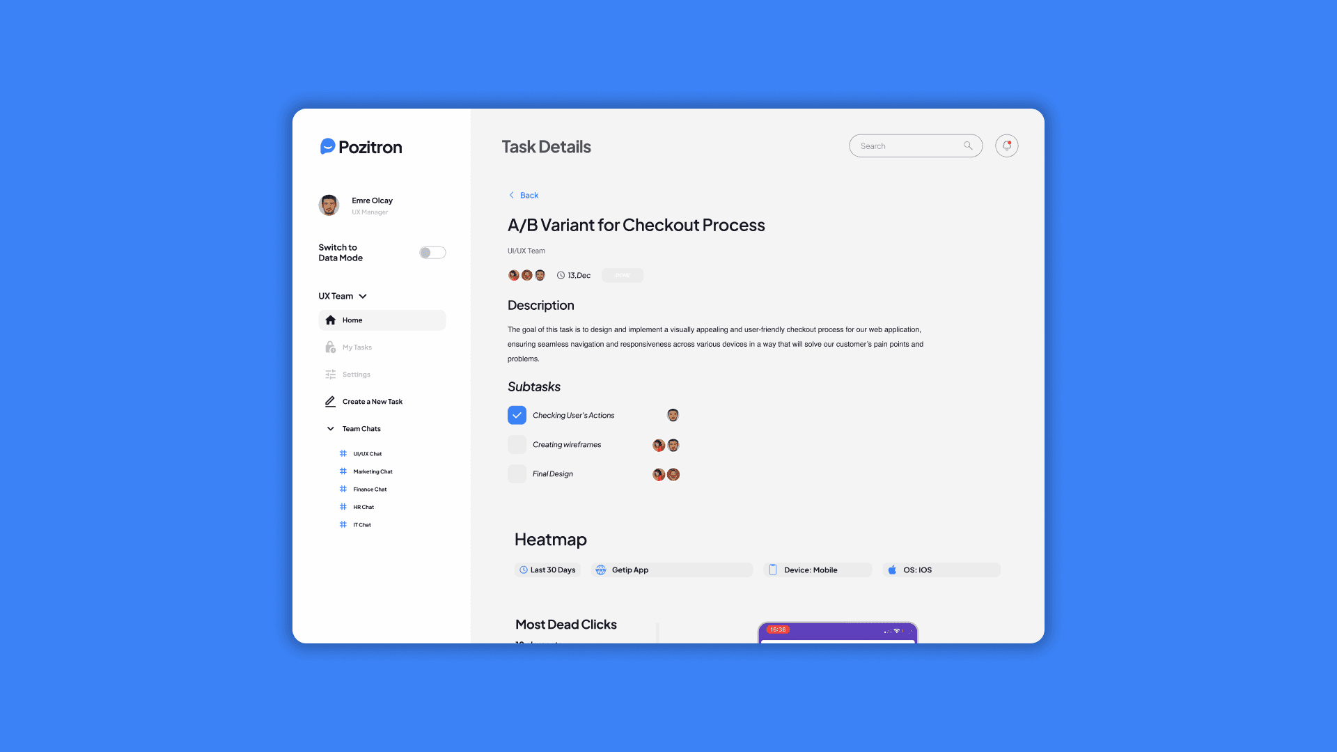 Check task details, create tasks without hassle.
